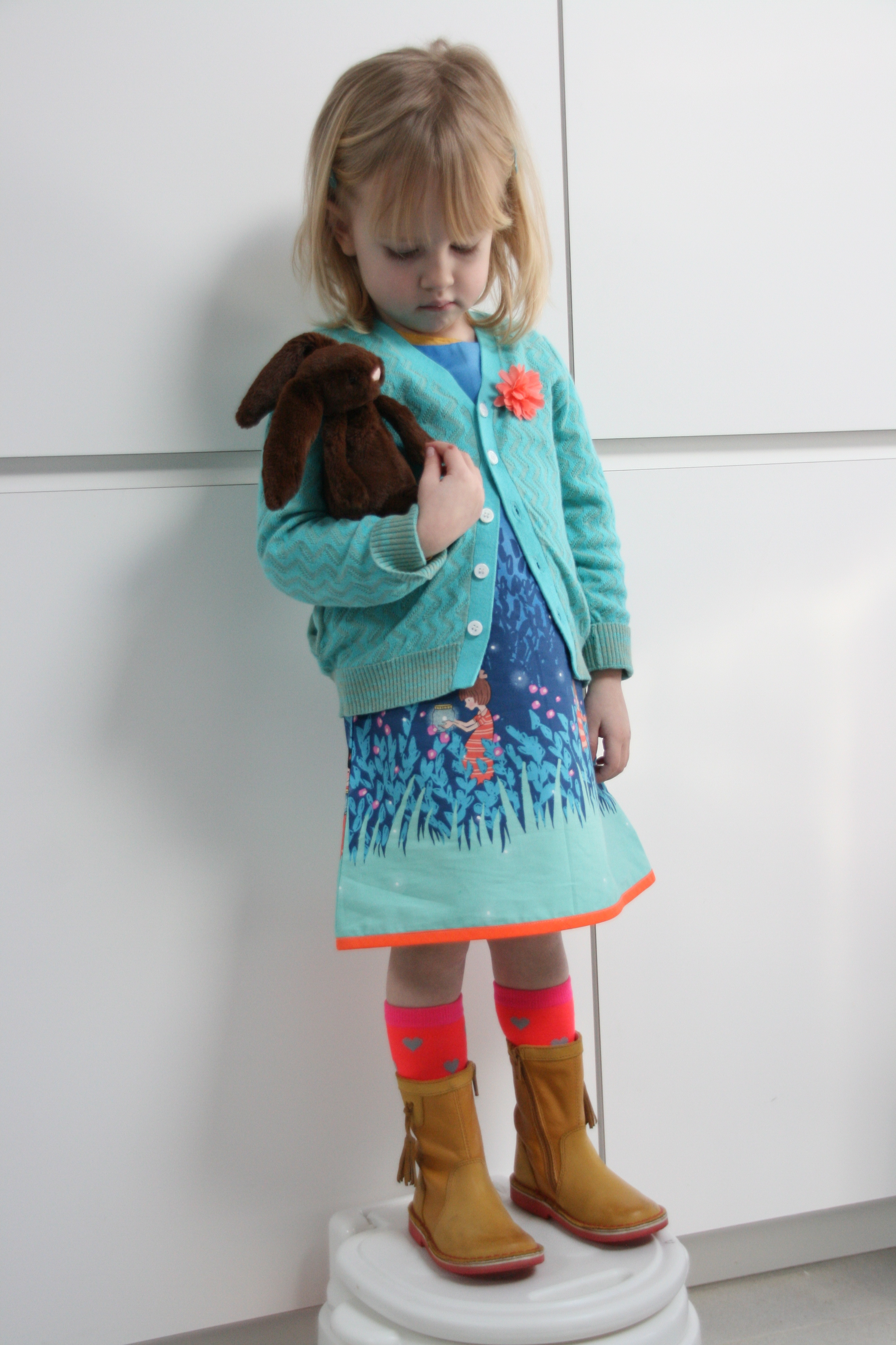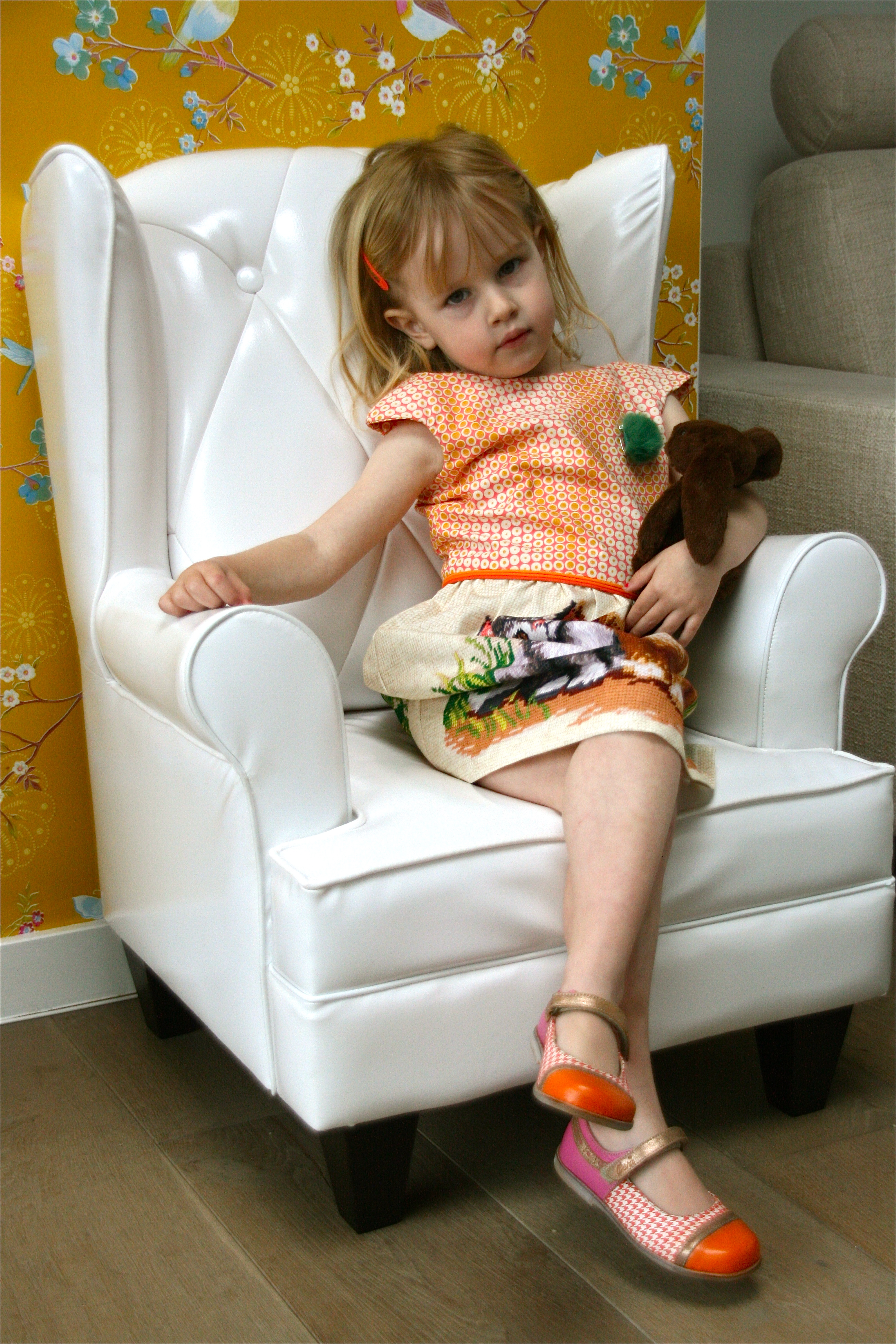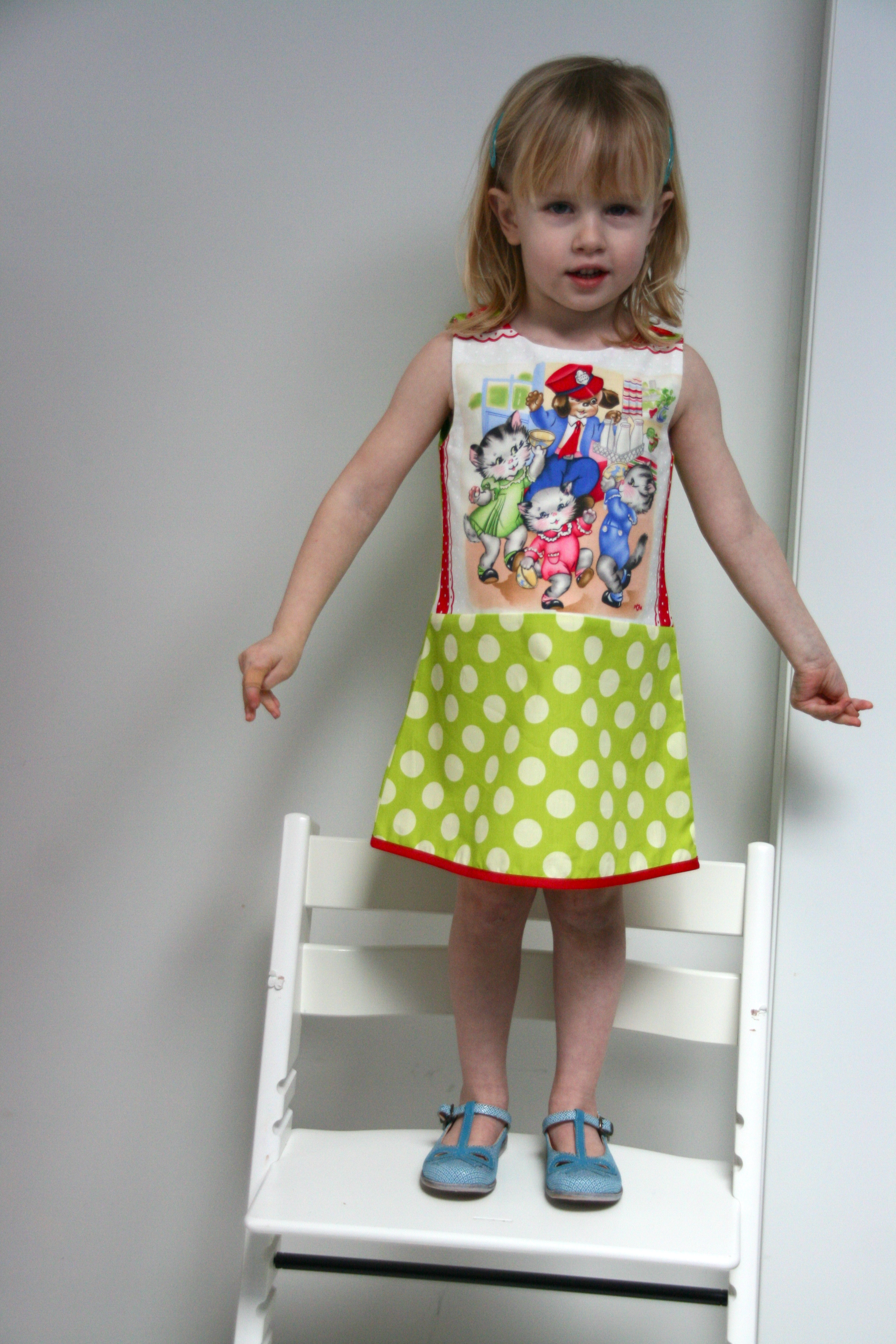 Er zijn zo van die kinderen die willen lopen nog voor ze kunnen stappen. Ik heb hier zo drie exemplaren in huis. Tja, van wie zouden ze dat hebben? Na een boel jurkjes, vorige week pas voor het eerst een hemdje voor midi-monster in elkaar gestoken. Blijkbaar moet de uitdaging altijd groter en groter zijn, want ergens had ik het in mijn hoofd gekregen dit weekend zowaar een echte jas te toveren.