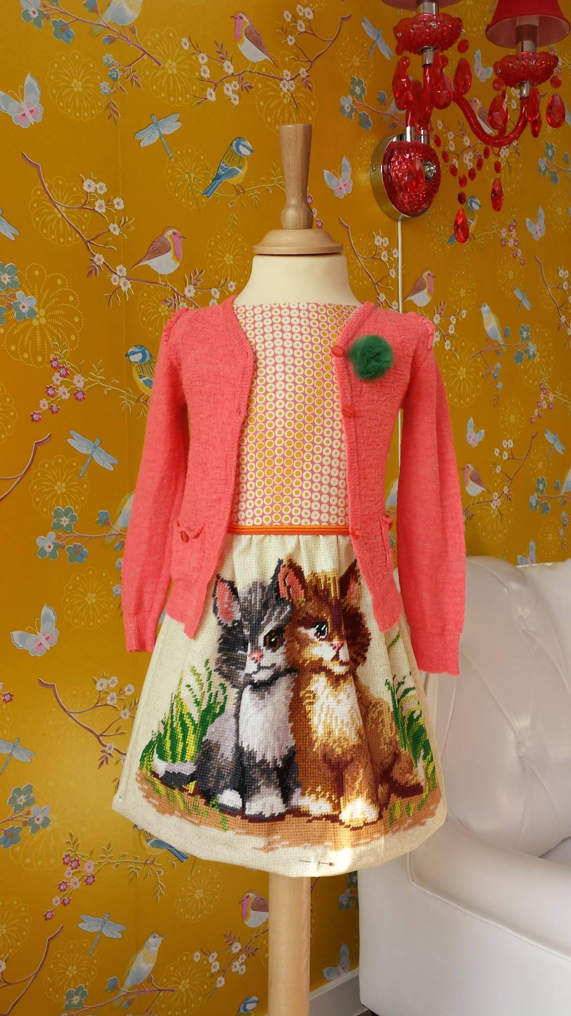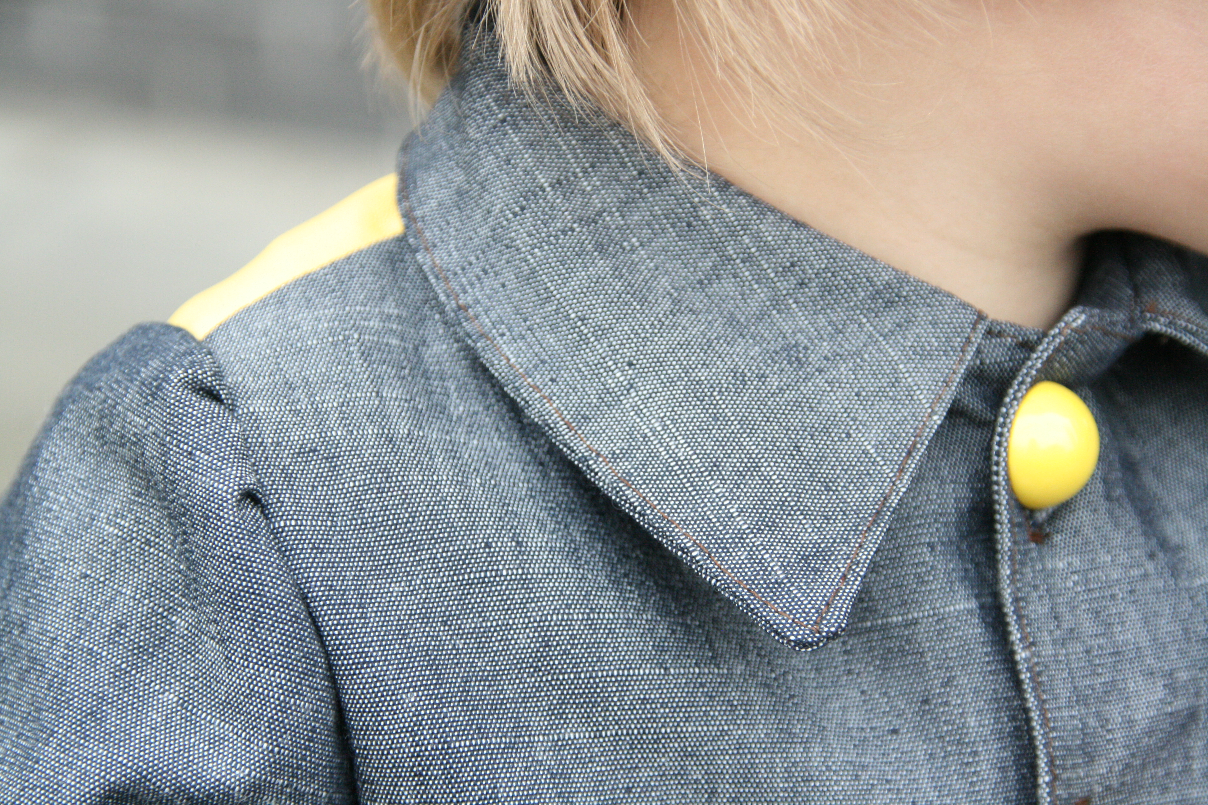 De gele knoopjes maken het af. Slechts drie, want ik wou dat het jasje nog genoeg speelruimte gaf.