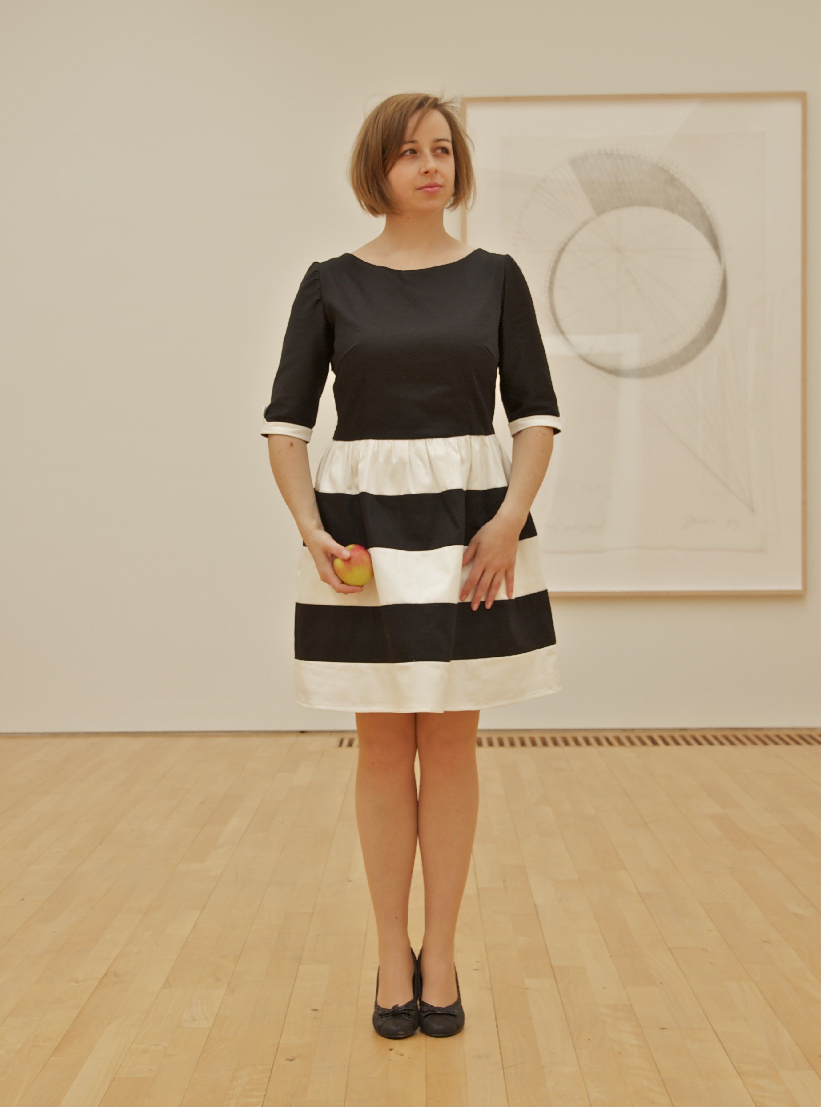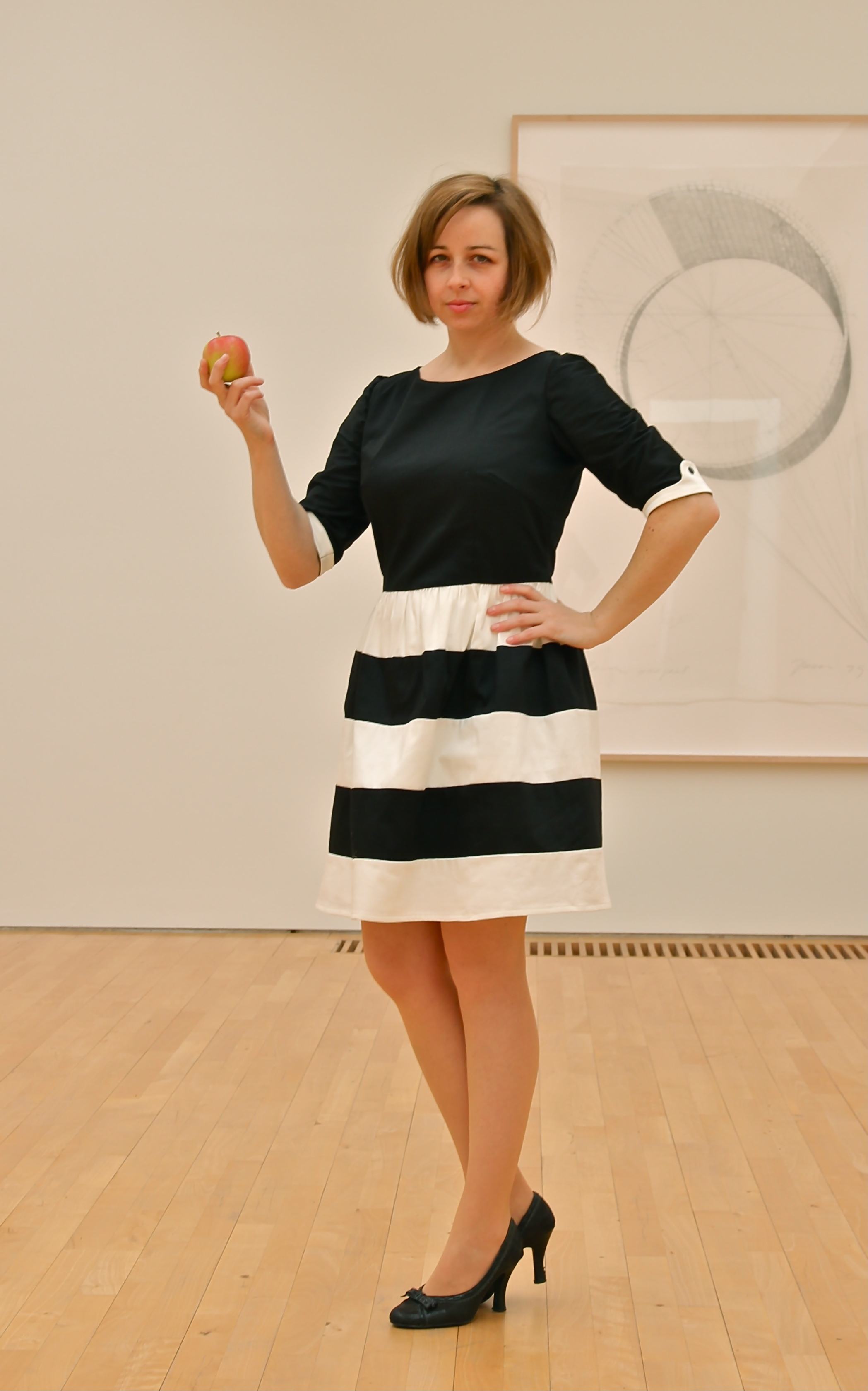 Hoewel Magritte een fascinatie had voor groene appels, vind ik de rode kleur van mijn exemplaren net iets interessanter. Het geeft een beetje punch aan de jurk.