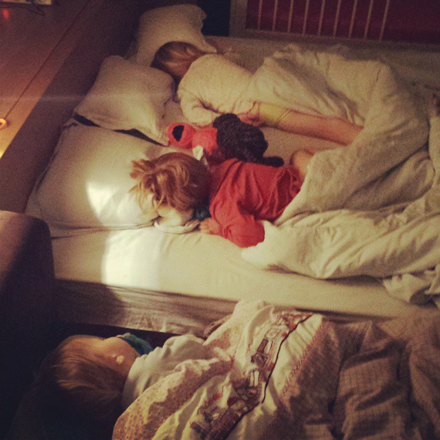 November: Papa is nogal vaak van huis weg voor het werk. Maar zelfs als hij thuis is, zijn onze kinderen welkom in onze slaapkamer. Er staat een extra zetel en een extra kinderbed. En een extra lattenbodem en matras, voor deze soort situaties.