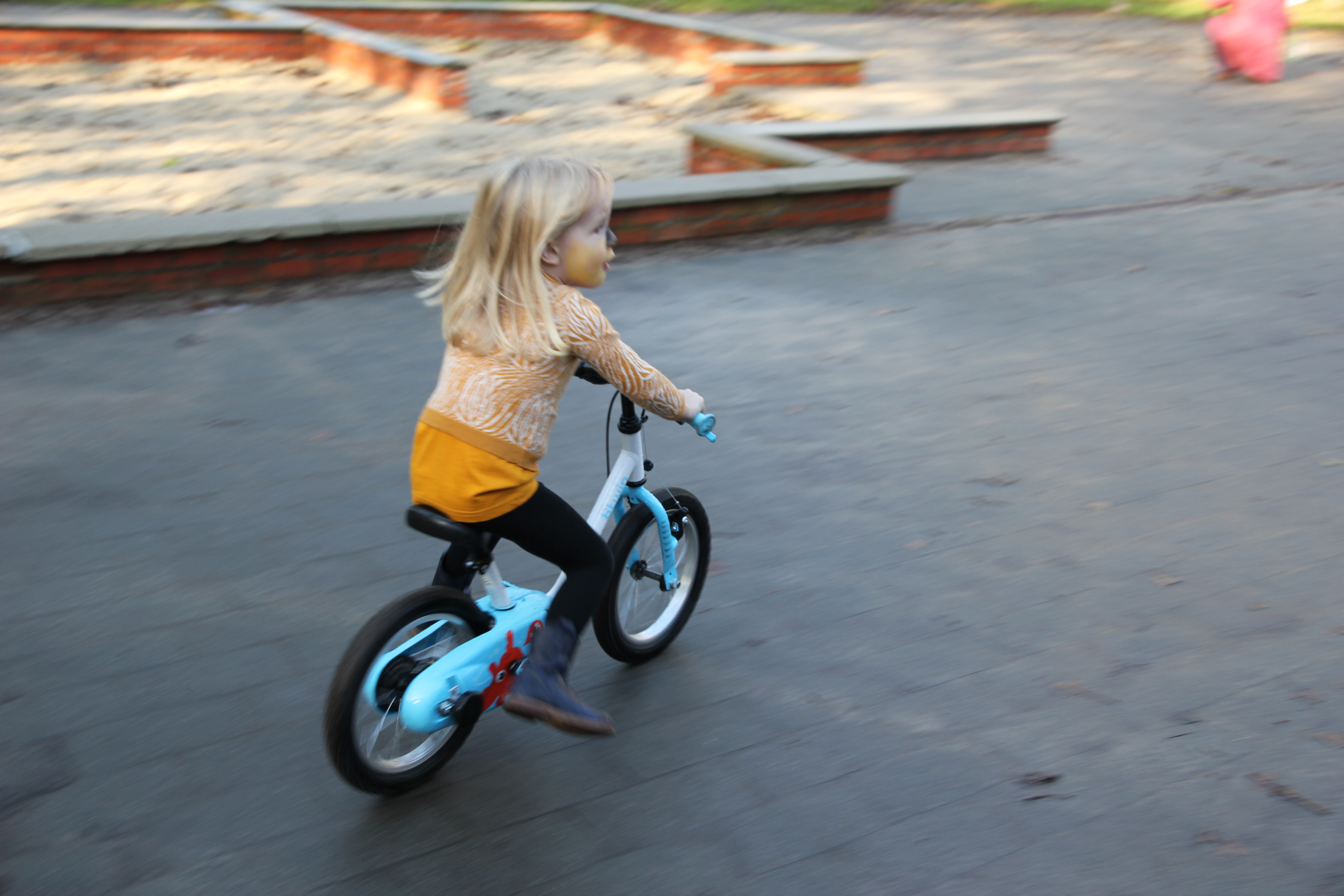 Juni: Daar gaat ze… fietsen kon ze al een half jaar, maar die start- en en stopangst kreeg ze maar niet overwonnen. Met haar kleine gestalte (amper 98cm op ruim 4,5 jaar) duurde het toch een pak langer voor ze comfortabel op een fiets zat, maar nu kan ze zich meten met de groten!