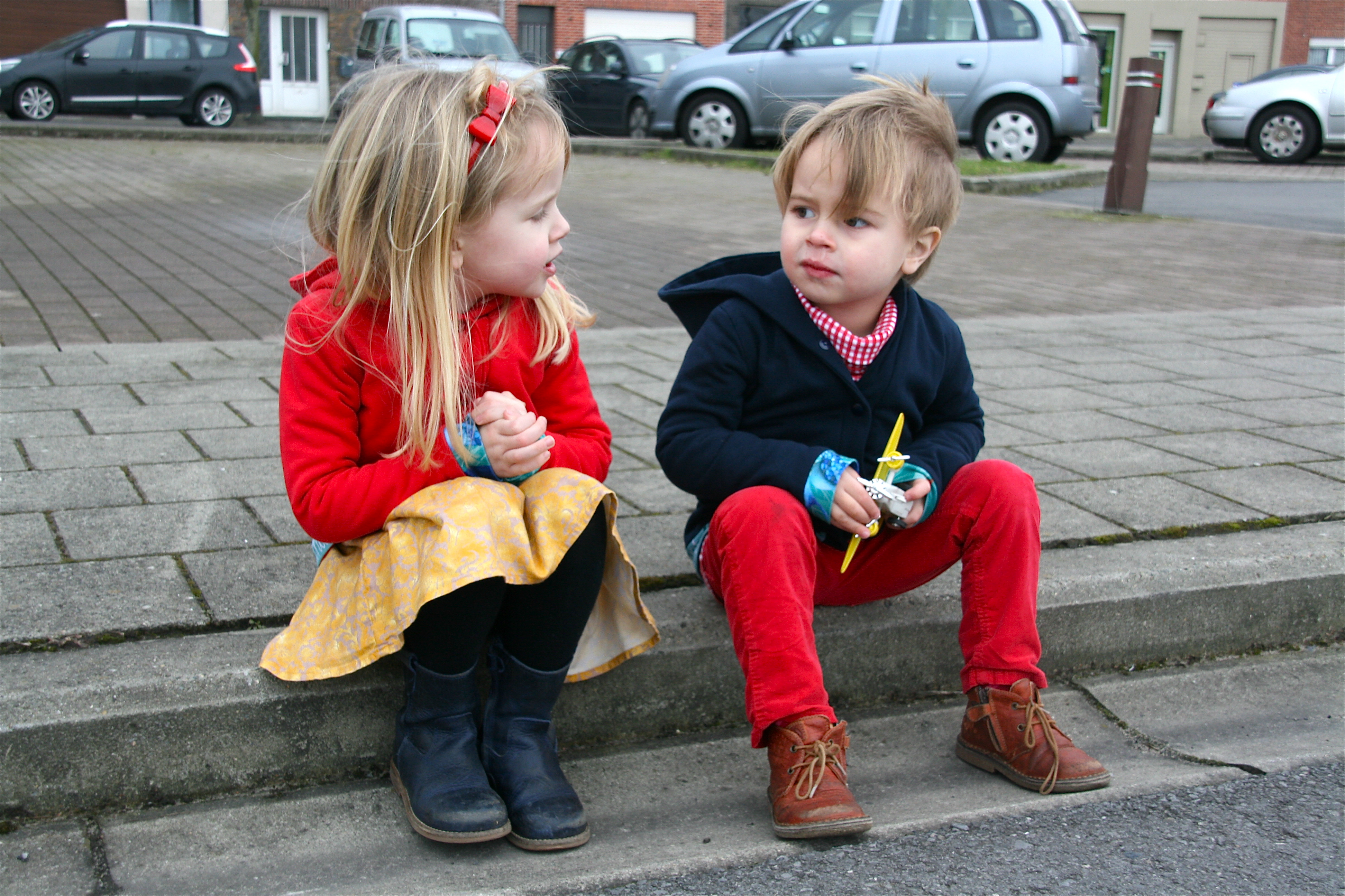 Wat doet een mens zowal op een koude, grijze winterdag, als alle speelgoed niets nieuws meer te bieden heeft en binnenzitten niet meer de nodige zuurstof? De straat oversteken en -als het ware in onze voortuin- wat aan ‘trainspotting’ gaan doen! En van het weinige licht gebruik maken om broer en zus in hun twee nieuwste aanwinsten te fotograferen.