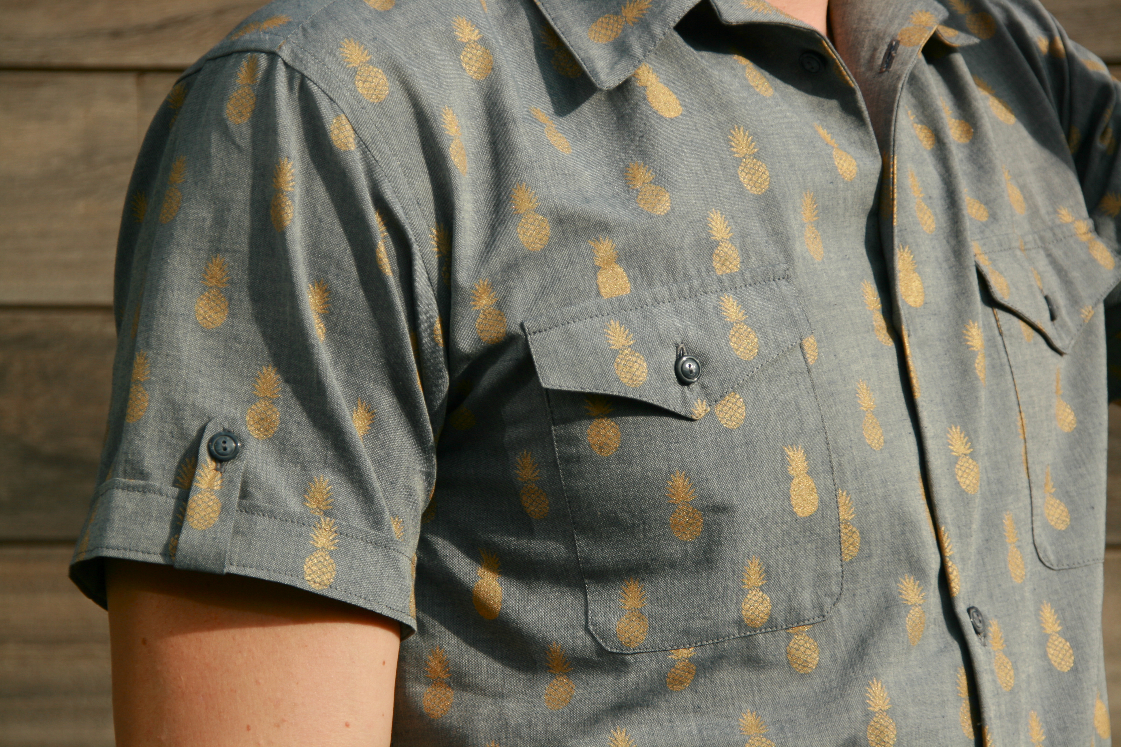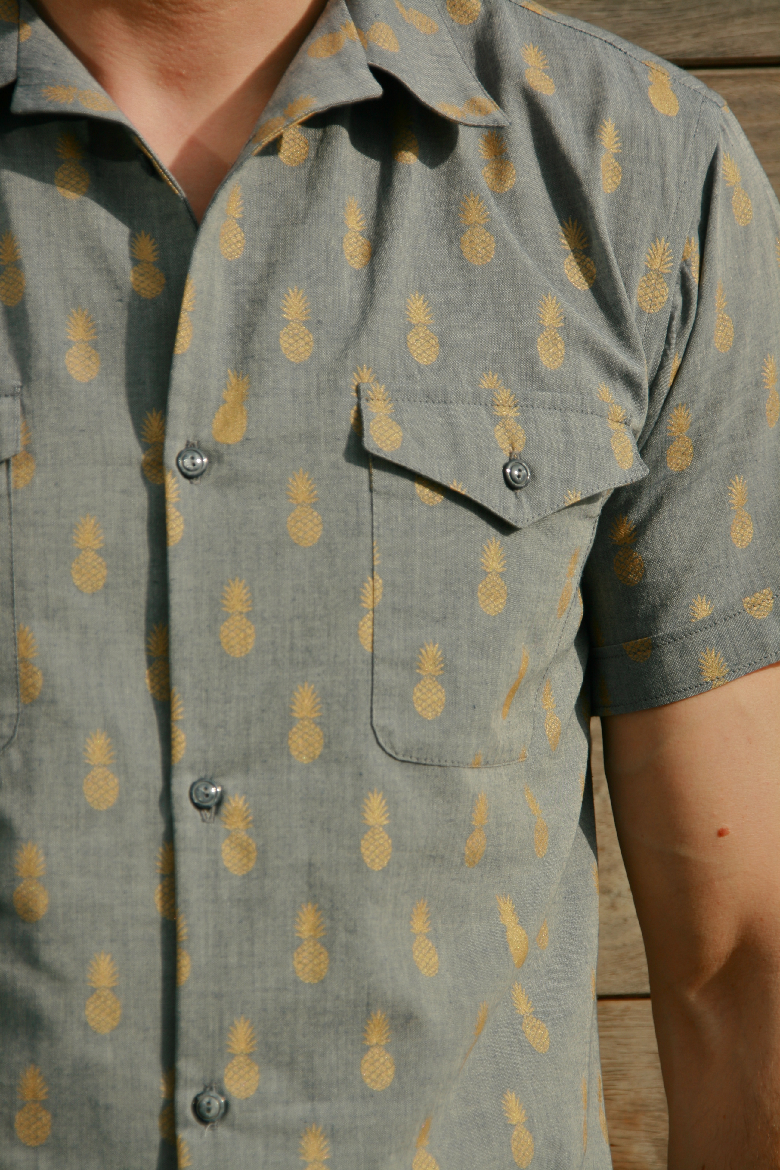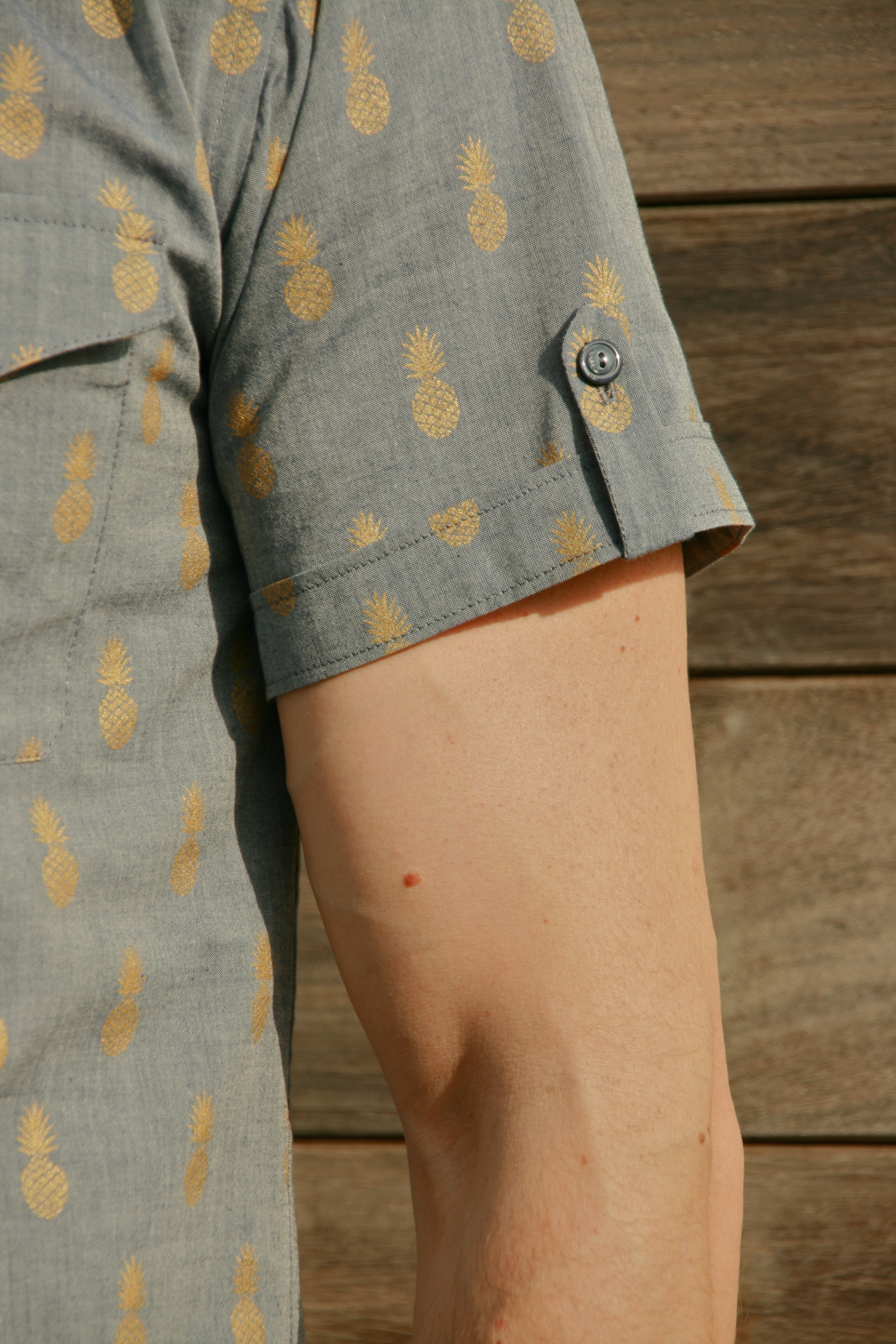 7. Wauw! En wat een propere afwerking. En een gewaagde maar perfecte stofkeuze. Mijn man hier is ook geen fan van korte mouwen hemdjes, maar ik denk dat ik het zo wel verkocht krijg. Alleen de ananassen krijg ik er hier waarschijnlijk niet door 😉