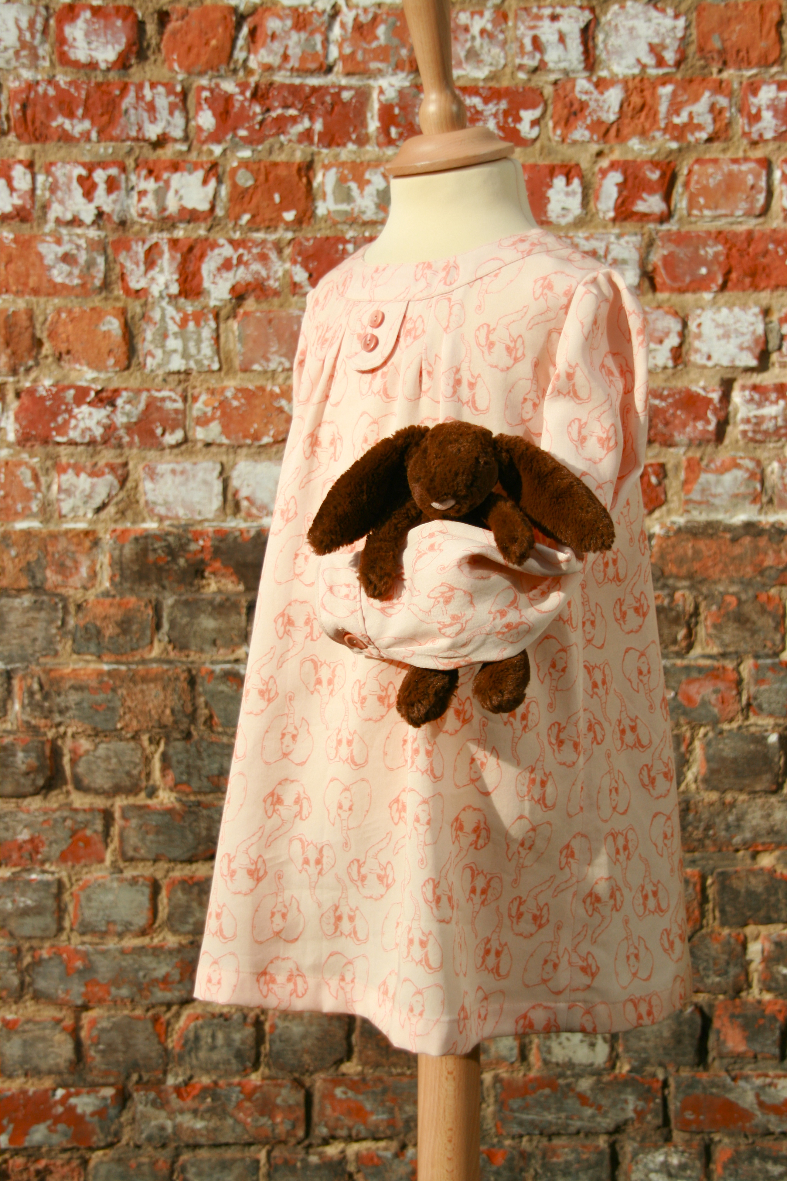 De stof is echt een pareltje. Het is met de hand bedrukte, superzacht nepbont van de Belgische toptextielontwerpster Lotte Martens. Ook de voering, een koraalroze structuurtricot, is stof van haar. Ik werkte af met donkerbruine boordstof en een koperkleurige rits.